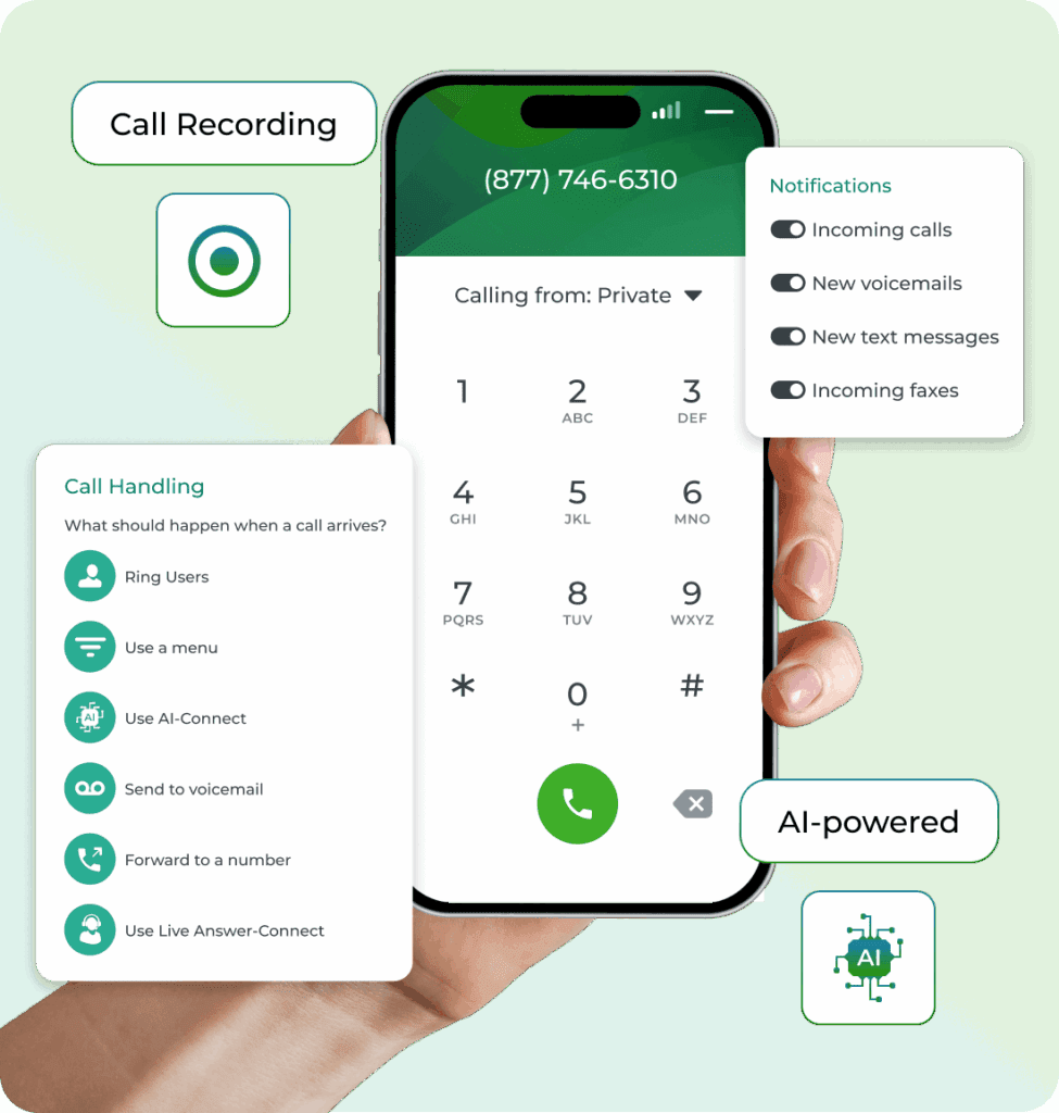 50+ customizable features like call routing, auto-attendants, call queues, voicemail transcription, and more