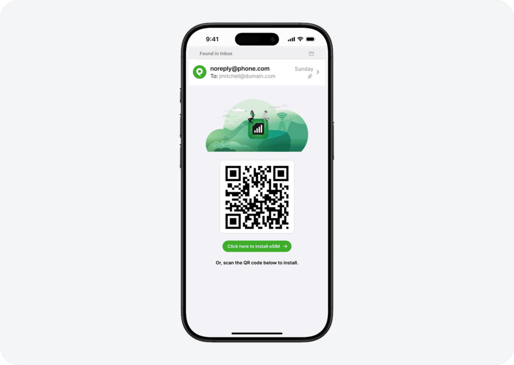 Once you add a ProSIM to your account and assign it to a user, you will receive an email with a link to install the ProSIM on your device. Android users will see a QR code you can scan to get started.